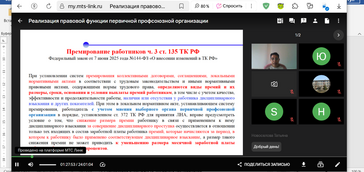 - «Профсоюзный контроль соблюдения трудового законодательства работодателем как основная составляющая защиты трудовых прав и экономических интересов членов профсоюзов»